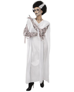 Show up to your next event and expect nothing less than 'best dressed' in this Universal Studios Monsters Bride of Frankenstein Womens Costume. Inspired by the beloved Bride of Frankenstein, this costume comes complete with everything you'll need to bring the look to life. This monster has been carefully designed and uses deep details. Included is a dress, bandages and gloves. Simply add the Bride of Frankenstein wig to top it off! Be what the party is missing and get ready to transform into a beloved bride. Perfect for Halloween, Costume parties and much more.
