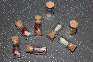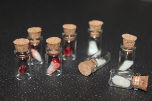 These mini Bloody and Plain Pulled Out Teeth Specimen Jars can have multiple uses. They can be put next to Apothecary Vials, other antique Jars, vintage photography, horror and Halloween decorations etc. It can also be used in films or medical displays. They can also be a gift or collectable to put in a glass cabinet!