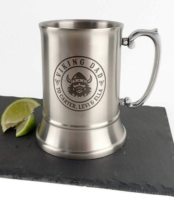 Viking Dad Personalised Engraved Silver Stainless Steel Beer Mug in Gift Box