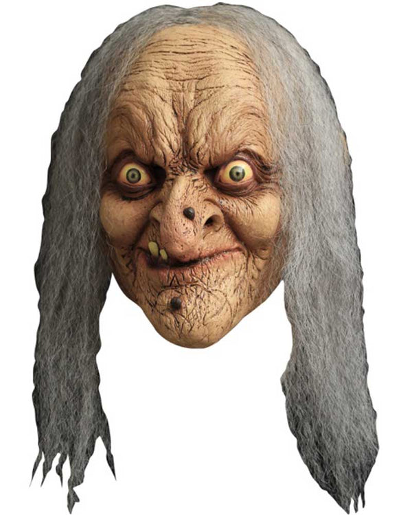 Complete your witch or old hag costume with this Wanda Mask. This mask is made from high quality latex with attached grey hair and dark warts on the nose and chin.