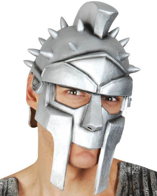 Show that you're invincible with the Warrior Silver Metal Look Mask. This mask has a metallic silver finish with faux metal studs and headpiece. The mask covers the back of the head, forehead and nose, leaving your eyes, cheeks and chin exposed. Wear this to complete any warrior garb.