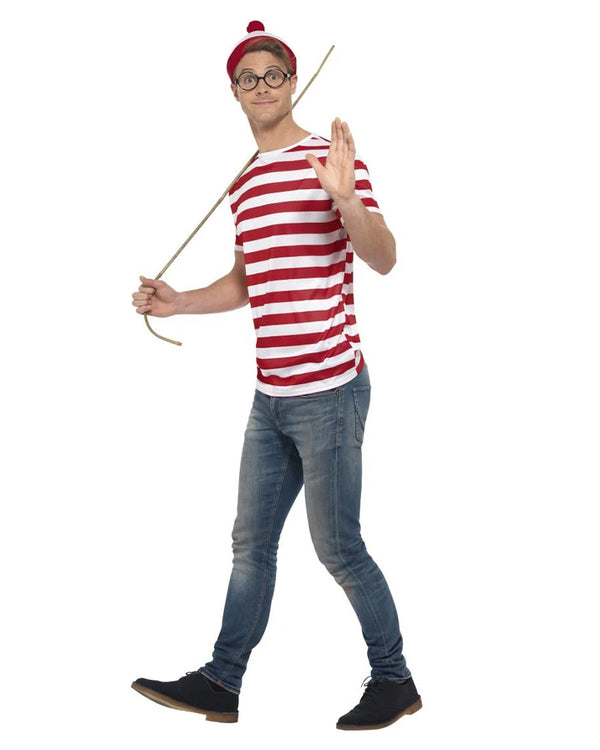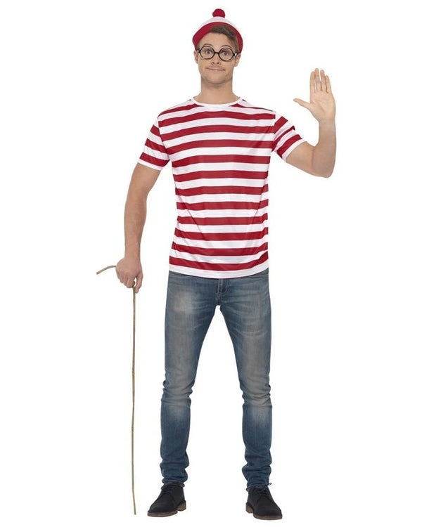 This Wheres Wally Adult Costume Kit equips you perfectly to join the ultimate search adventure, channelling the beloved character Wally wherever you go. The costume comes with the classic red and white striped short-sleeve t-shirt, matching red and white beanie hat and the signature round, black-framed glasses that bring the entire look together. Perfect for costume parties, themed events, or just a bit of nostalgic fun.