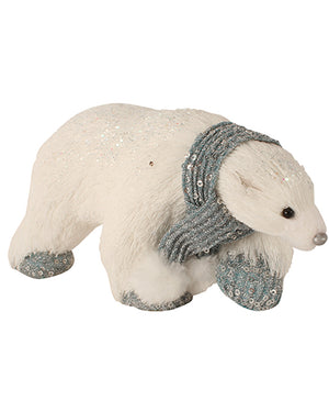White Christmas Polar Bear Walking With Scarf Ornament 21cm