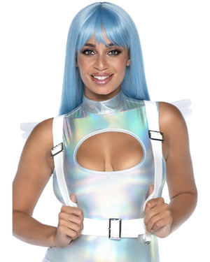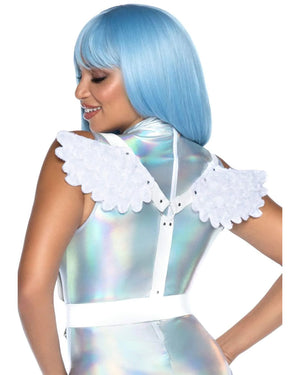 This White Furry Angel Wing Body Harness is the perfect addition to your Mardi Gras outfit or angel costume for Halloween, or to add boldness to your everyday look. The harness is white with two small wings attached to the back and features adjustable straps at the shoulders and around the waist. Pair with a bodysuit or dress for your own makeshift angel costume.
