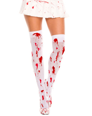 White Opaque Thigh High Stockings with Blood Drip