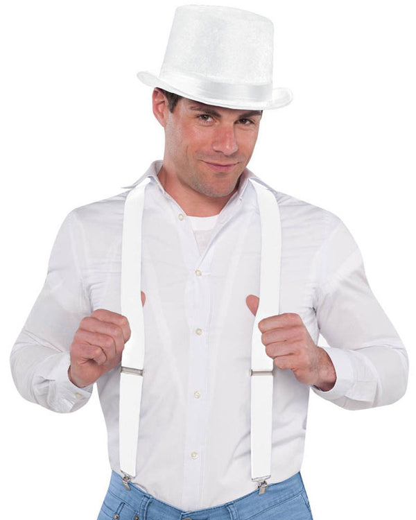 These White Suspenders are the perfect finishing touch to your costume. These suspenders feature a Y-back design.