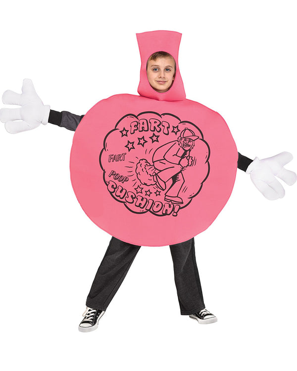 You may be able to blame the costume for the sounds of a fart but certainly not any unwanted smells...Parade around in this Whoopee Cushion with Sound FX Kids Costume and prank all your friends! The costume includes a hooded tunic in the shape of the classic whoopee cushion with a comical print of someone farting on the front, a fart sound FX unit and three AA batteries to start you off!