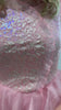 - Sleeveless, long pink dress with waterfall-layered glitter tulle skirt and satin under-skirt.