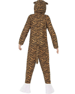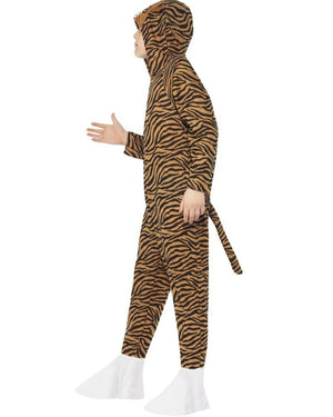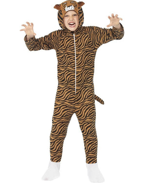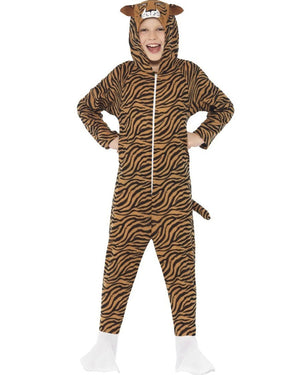 Let your kid show their wild side in this Wild Tiger Kids Costume. The costume features a full body zip up jumpsuit with an attached tail. The hood is also attached and features a tiger face and ears on the top.