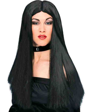 Top off your witch or Morticia costume perfectly with this Witch Black Wig. This straight, middle-part black wig is sure to be a Halloween hit!