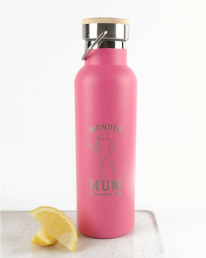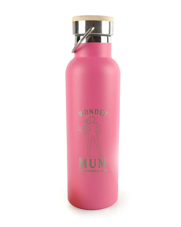 Wonder Mum Pink Personalised Engraved 650ml Wooden Lid Water Bottle