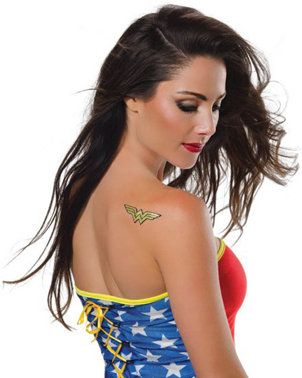 Complete your heroic look with the Wonder Woman Glitter Body Sticker. This sticker features the iconic Wonder Woman logo and removes easily.