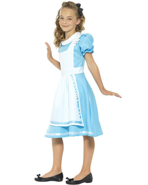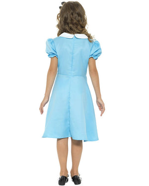 This Wonderland Princess Girls Costume is an absolute classic. The costume includes a pale blue knee length dress with attached white apron and collar, as well as a matching headband.