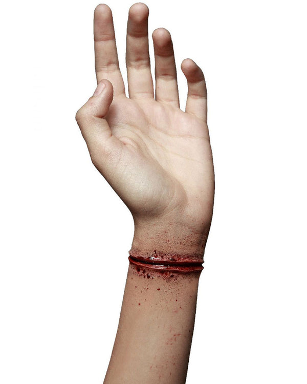 Complete your halloween costume with a very dark touch with this Wrist Cut Prosthetic. Made from high quality, pre coloured latex, this prosthetic is simple and easy to apply, requiring only a bit of spirit gum to adhere to the skin. Deadly!