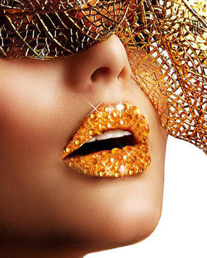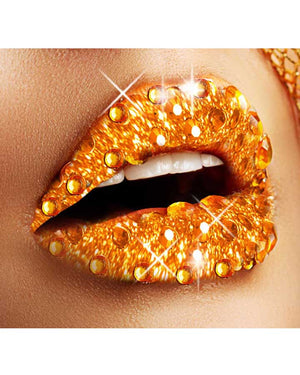Stand out from the crowd and add some bling to your lips with this Xotic Gold Kisses Lips Kit. This gold glitter rhinestone lip makeup is self adhesive and is safe and easy to use. You just peel, smile and stick. This sassy gold costume makeup will add a unique touch to your next fancy dress costume. They are waterproof too which means you can eat and drink in them!