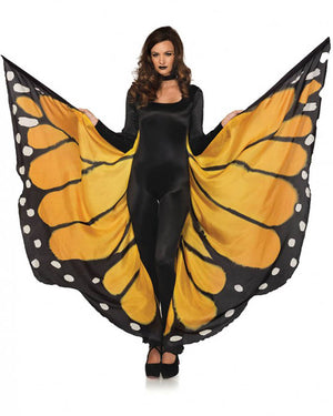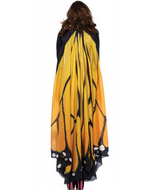 Transform your costume from ordinary to extraordinary with this Yellow and Black Butterfly Cape. The printed on design makes for a really dramatic look and folds away behind you when not in use. Cape ties around the neck and has wrist straps and support sticks.