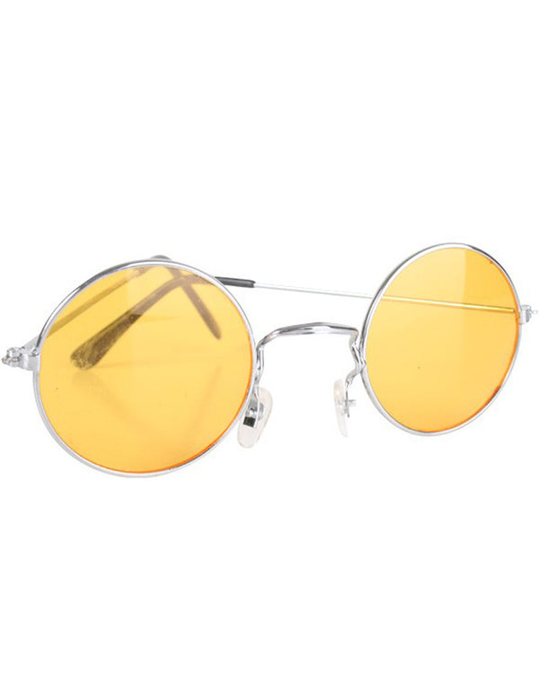 Make love not war in these Yellow Lennon Glasses! These sunglasses are similar to those worn by famous musician and activist John Lennon and feature a silver frame with yellow lenses. Perfect for Lennon, '60s or '70s looks!