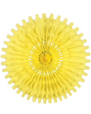 Add a pop of colour to your decorations with this Yellow Paper Fan Decoration. This decoration comes with attached string for easy hanging.