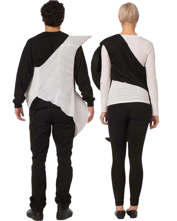 Be the Yin to their Yang in this matching Yin Yang Couple Costume. The set comes with two costumes: one black tunic in the shape of Yin and one white tunic in the shape of Yang. The costume is worn over the head and over one shoulder with material around the waist and back and an open bottom for mobility. Become one interconnected force with your S.O. for your next party.